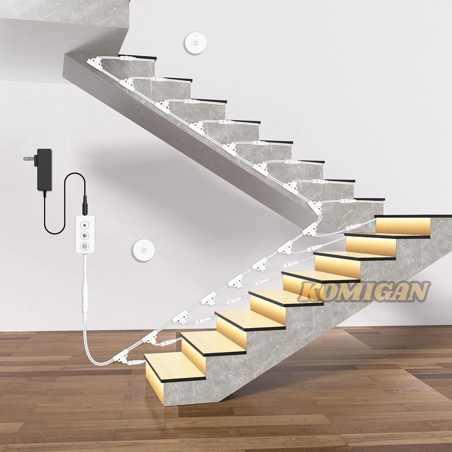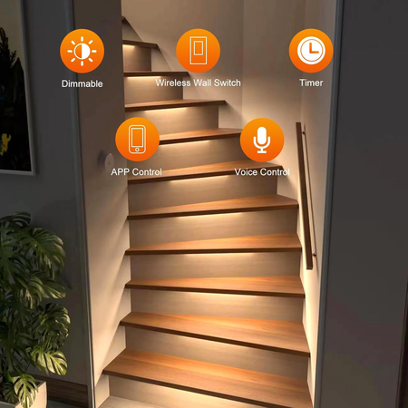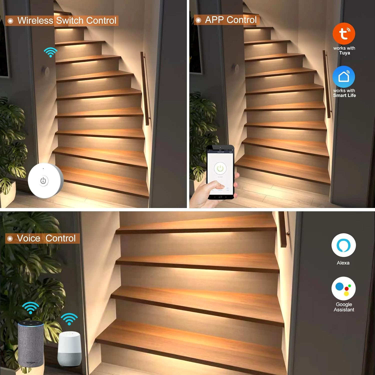 LED Stair Lighting Kit KMG-8497, Wireless Wall Switch Control, Tuya App Controlled, Compatible with Alexa and Google Assistant, Timer Schedule (Natural White 4000K)