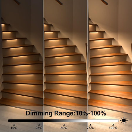 - This LED stair lights kit is suitable for 1-24 steps 20~50in Width Indoor Staircase, ON/OFF, Brightness Adjustable from 0%-100%, Timer Schedule Function