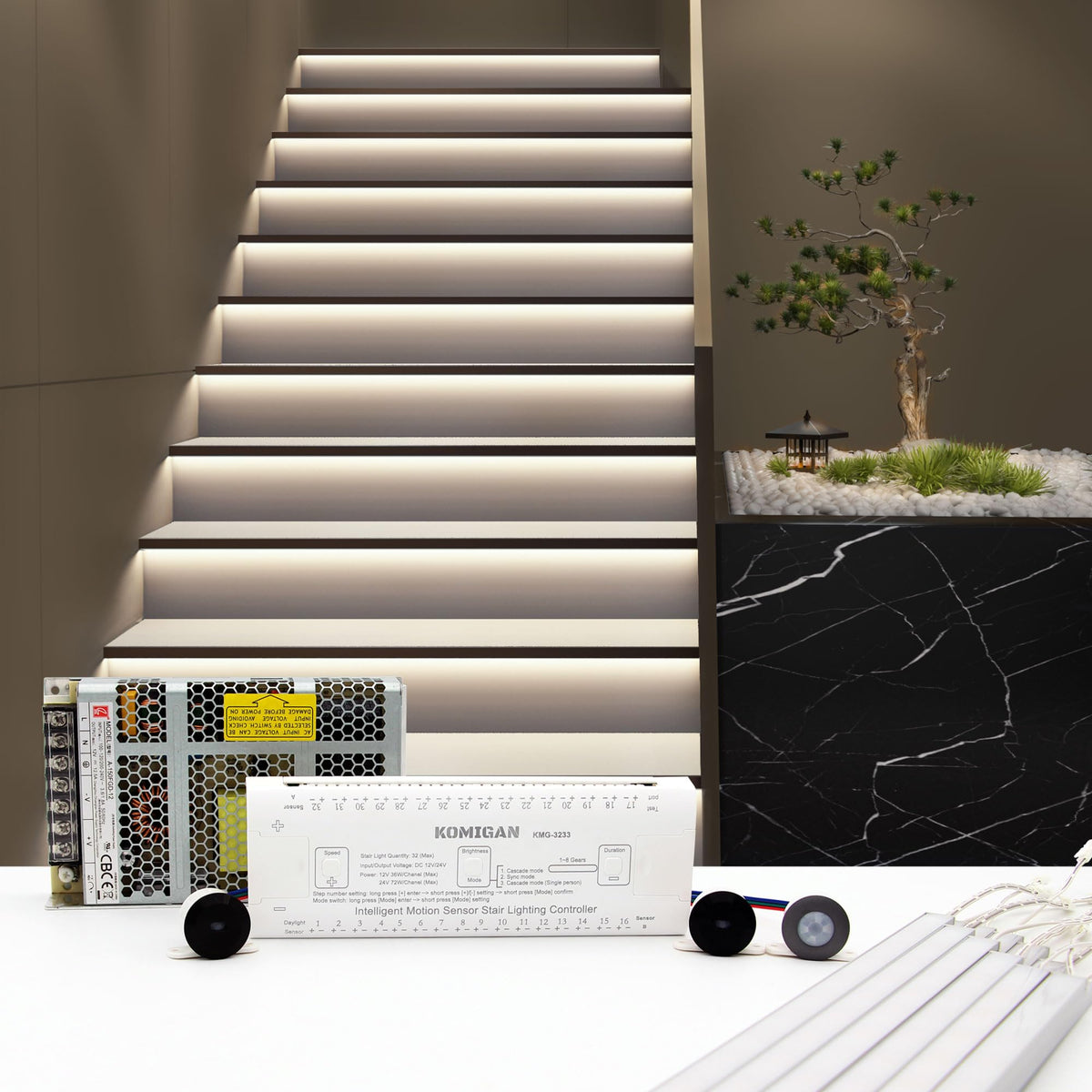 KOMIGAN Motion Sensor LED Stair Light Kit KMG-3233, Cool White 6000K 23.6 Inch Aluminum LED Light Bar for Staircase Lighting