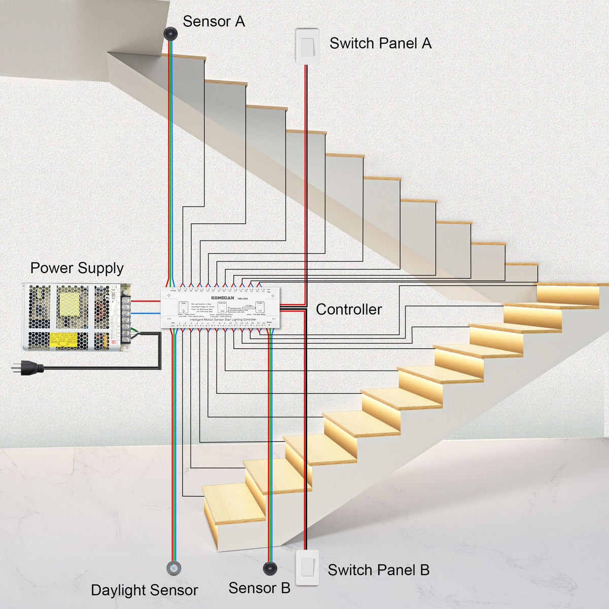 - KEY FEATURE: Our super bright LED lights deliver a soft, uniform illumination without any noticeable light spots.This light kit is designed for stair widths of at least 24 inches. The LED light bar can be securely attached using either double-sided adhesive or metal clips, offering flexibility in installation methods. Even without prior experience as a professional installer, you can also install it easily.