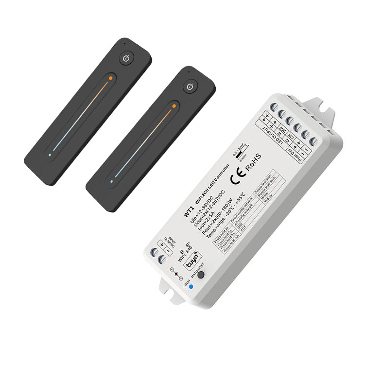 Tuya APP + RF 2.4GHz WiFi CCT 2CH LED Controller WT1 for Single Color CCT LED Strip Light